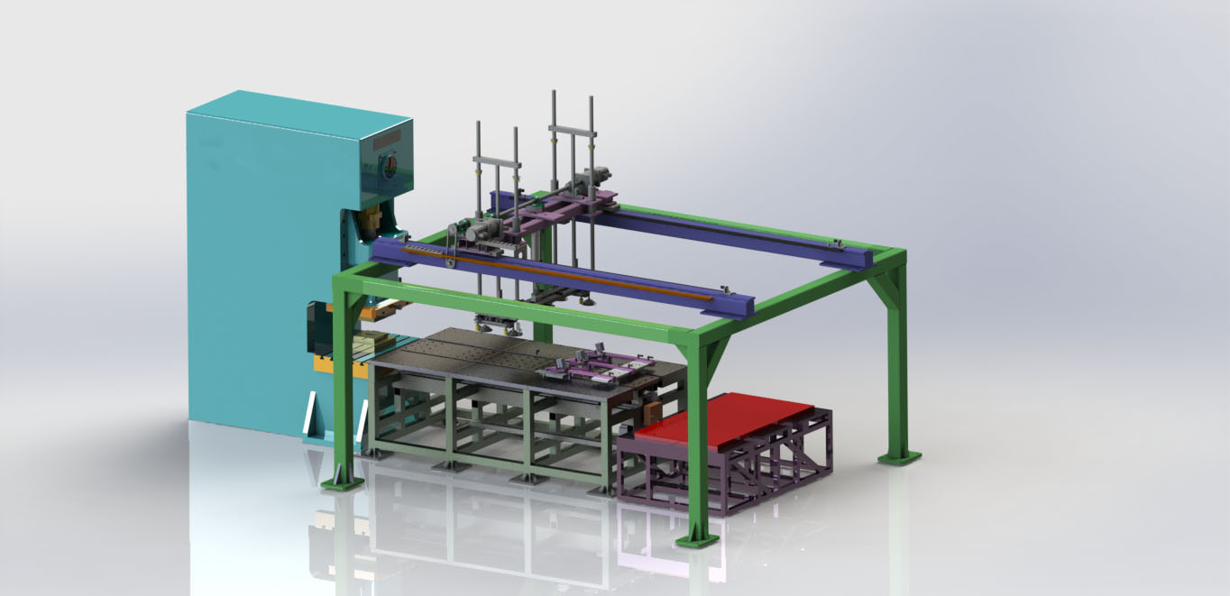 設(shè)備專為大板材料自動(dòng)下料開發(fā),實(shí)現(xiàn)自動(dòng)上板、自動(dòng)對齊定位、自動(dòng)沖壓下料、自動(dòng)翻板、自動(dòng)收產(chǎn)品、自動(dòng)收集廢料。
